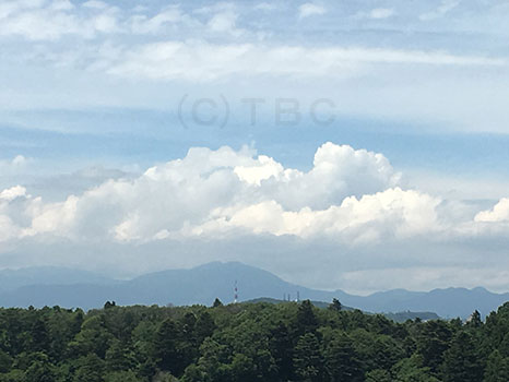山沿いはモクモクと雲が湧き始めている。きょうも夕立か?