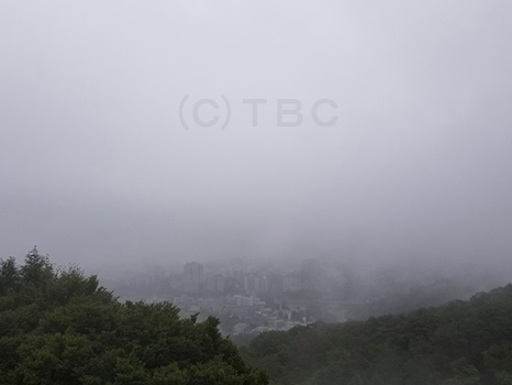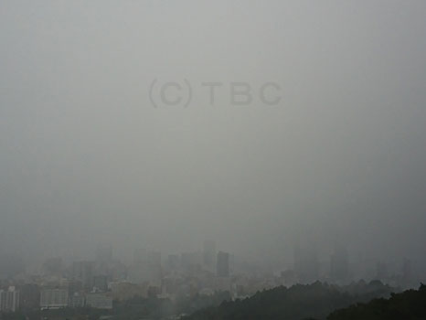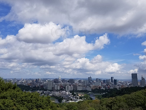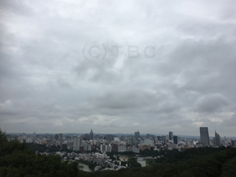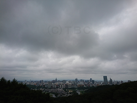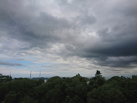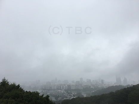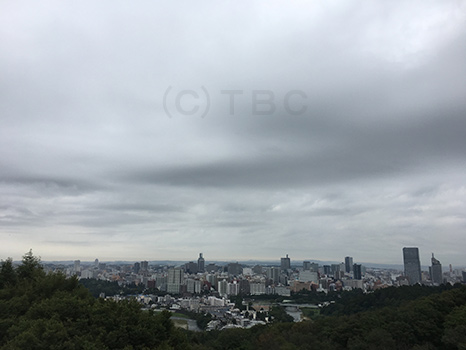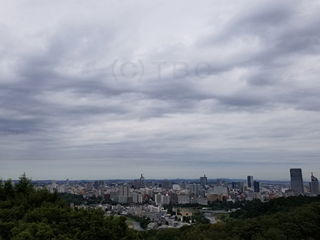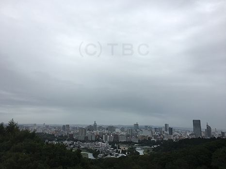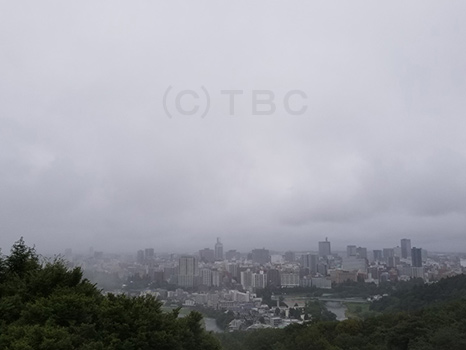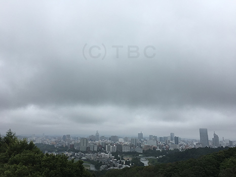 前線の影響で、雨が降ったりやんだり。仙台市中心部は霞んで見えた。