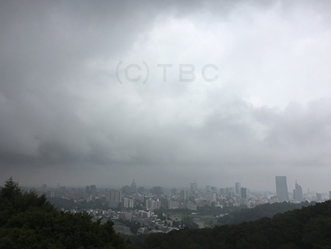 山の方は、鉛色の雲が広がり、雨が降っている模様。