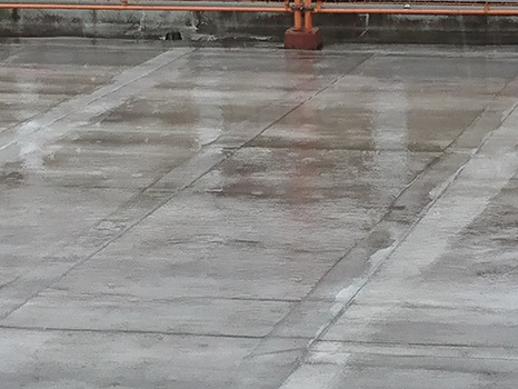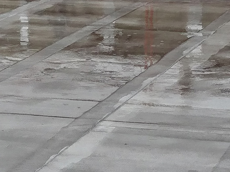 水たまりにやや大きい雨粒が絶え間なく落ちてくる。