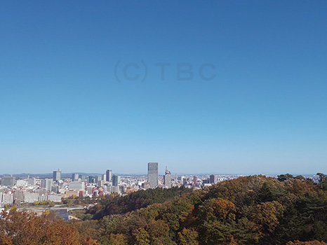 青葉山の緑と青空のコントラストが美しい。